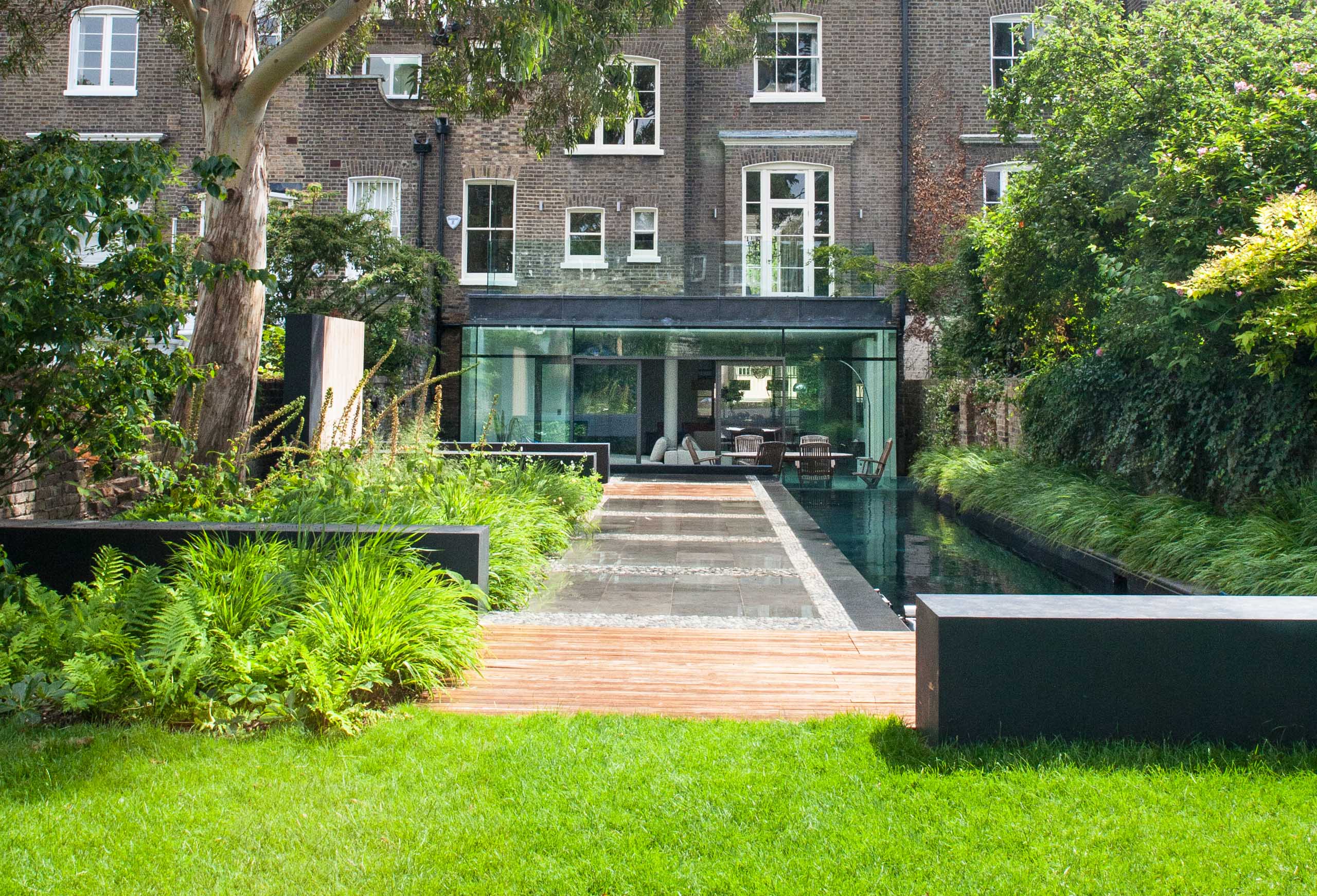 Substantial reconstruction and extension of a large period house overlooking Primrose Hill. While the original features were carefully restored ,the lower ground floor was further excavated and completely remodelled to provide a spacious and contemporary, free flowing living space which opens out onto the pool and landscaped garden.